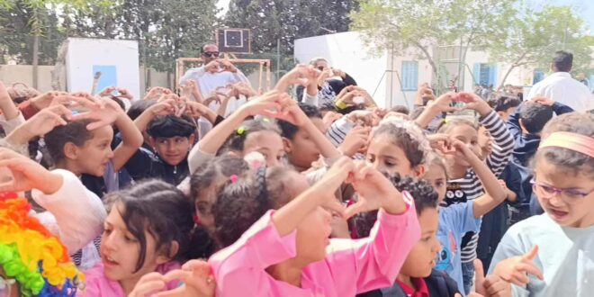 “عتيق” ترسم الفرح على وجوه أطفال مدرسة المختار بلاغة وتؤكد: الفن يبدأ من الفصل الدراسي